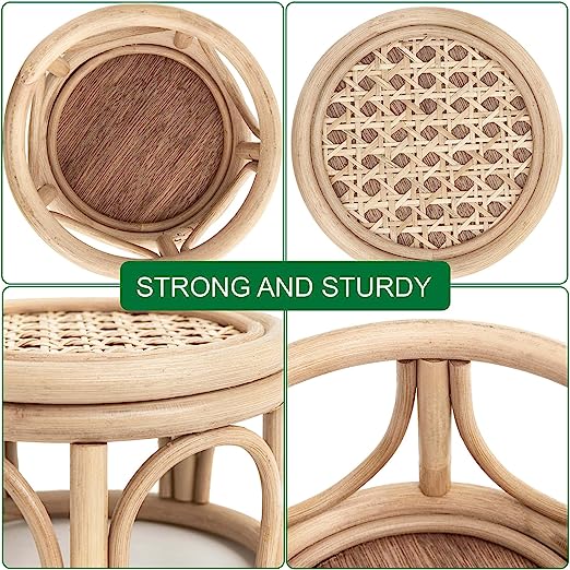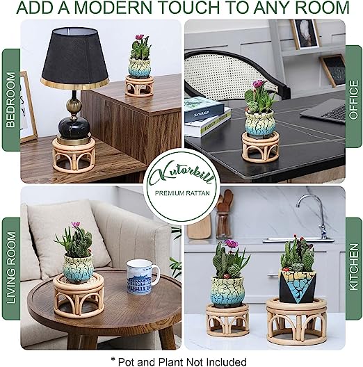 Boho Rattan Wicker Riser Plant Stand Indoor | 7.0″ & 5.5″
