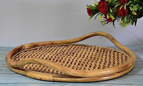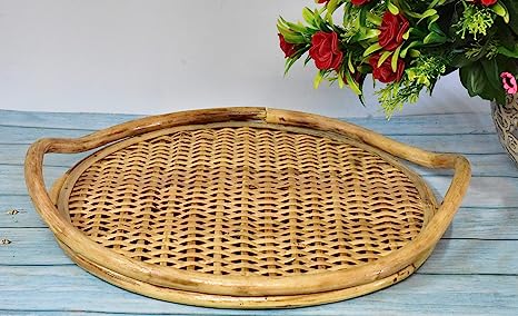 Elevate your home décor with the Wicker Round Tray, an exquisite blend of functionality and style. Crafted meticulously in Uttar Pradesh, this tray serves as a versatile addition to your home, perfect for serving or as a decorative piece. With its earthy charm and handcrafted beauty, this tray is bound to become a favorite in your home. Speciality: A Masterpiece of Craftsmanship The Wicker Round Tray is a testament to the skilled artisans of Uttar Pradesh. Made from high-quality cane and bamboo, this tray embodies durability and elegance. Its large size makes it perfect for serving coffee, snacks, or drinks, while also serving as a decorative piece that adds a touch of natural beauty to any space. The intricate weaving and honey gold color make it a standout piece, whether you’re using it in the kitchen, living room, or bar. How to Care: Easy and Efficient Caring for your Wicker Round Tray is simple and straightforward. This tray is designed to withstand all weather conditions, making it a durable choice for everyday use. To maintain its beauty, simply wipe it with a damp cloth to remove any dust or spills. Avoid exposing it to excessive moisture for prolonged periods to ensure its longevity. With minimal maintenance, your tray will continue to grace your home with its natural charm.