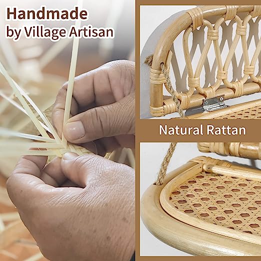 Handmade Boho Rattan Wall Shelf | 16.5 Inch | Floating Style