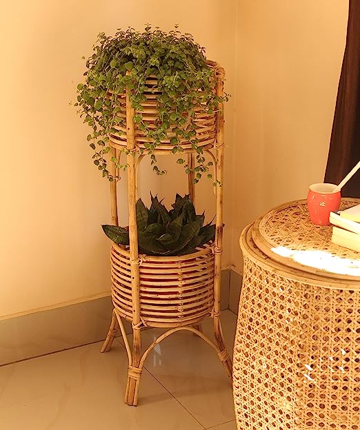 Made of natural cane or rattan, giving it a rustic and earthy feel Durable and sturdy enough to hold flower pots of various sizes Lightweight and easy to move around, making it ideal for indoor or outdoor use Can be easily cleaned with a damp cloth Can be used as a stand alone piece or combined with other pots to create an attractive display