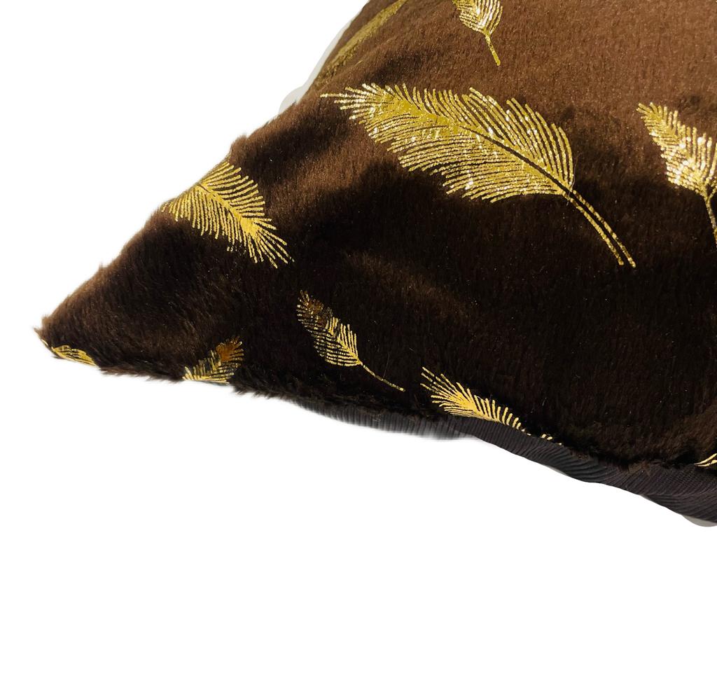 Experience the luxurious charm of our Feather Printed Faux Fur Cushion Covers in rich brown. Measuring 16×16 inches, these covers showcase an elegant feather print and feature a convenient zipper for easy maintenance. Elevate your decor with a touch of sophistication and indulge in the plush comfort. Shop now to add a warm and stylish accent to your living space.