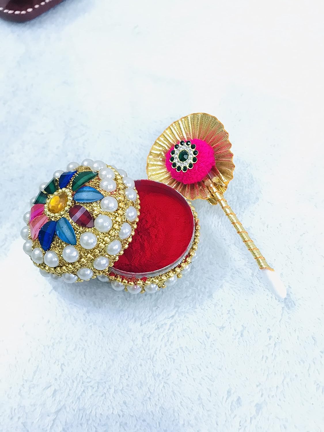 Santarms Handcrafted sindoor box gift fancy set pooja articles Gifting Sindoor Moti Dibbi |A traditional Sindoor Dani having versatile use. With the inline moti beads beautifully designed and decorated with colored stones, these dibbi of various sizes are sure to win the hearts of the owner carrying them. kumkum box gift fancy set