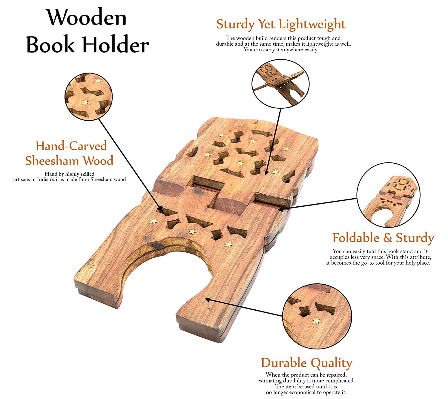 Wooden Book Stand for Reading | Holy Books Holder | 10 inch